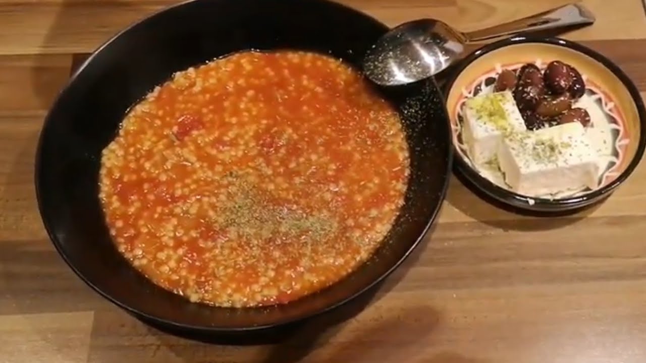 Trahanas Mit Tomaten Oliven Und Rukola Rezept Petitchef